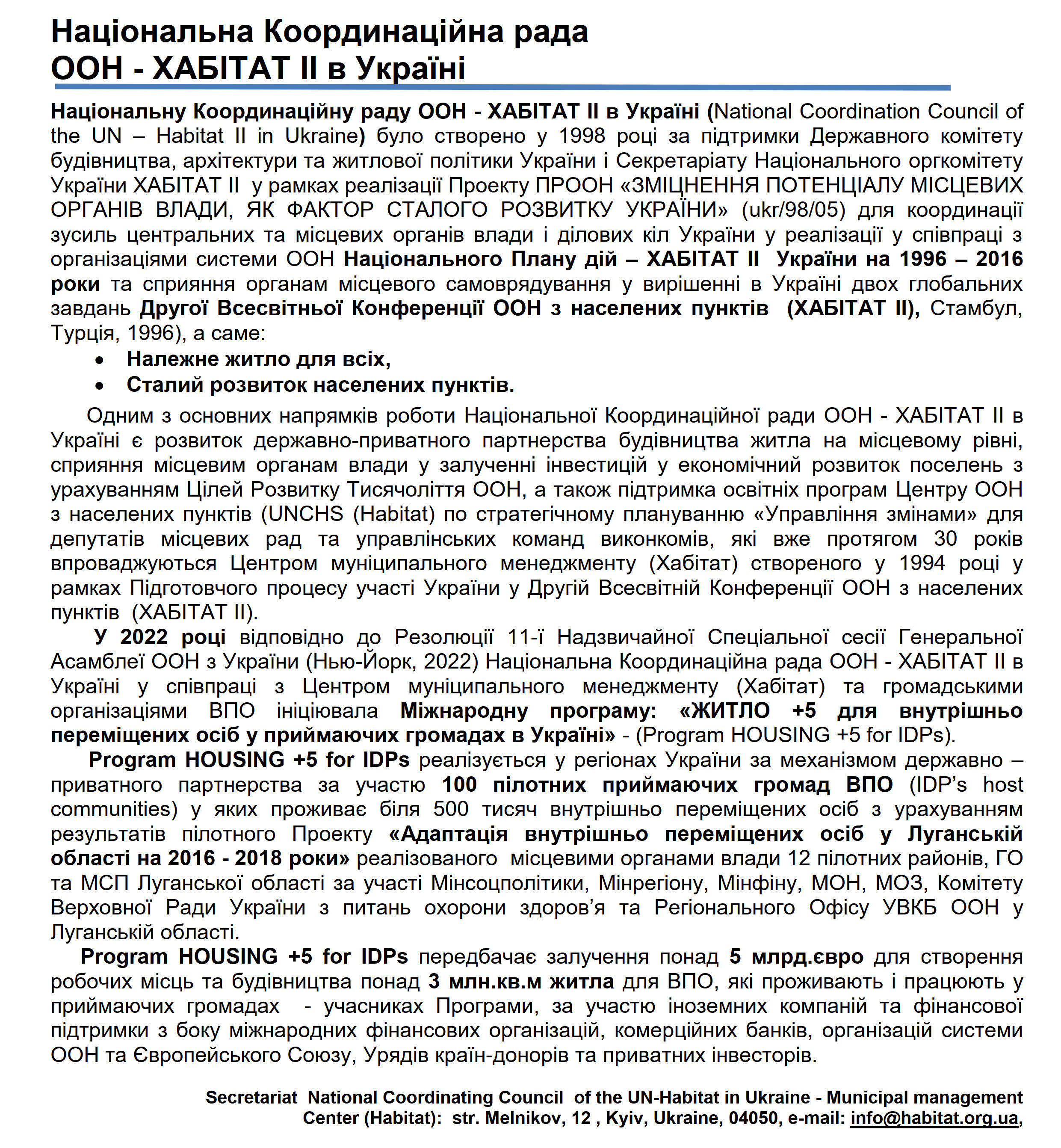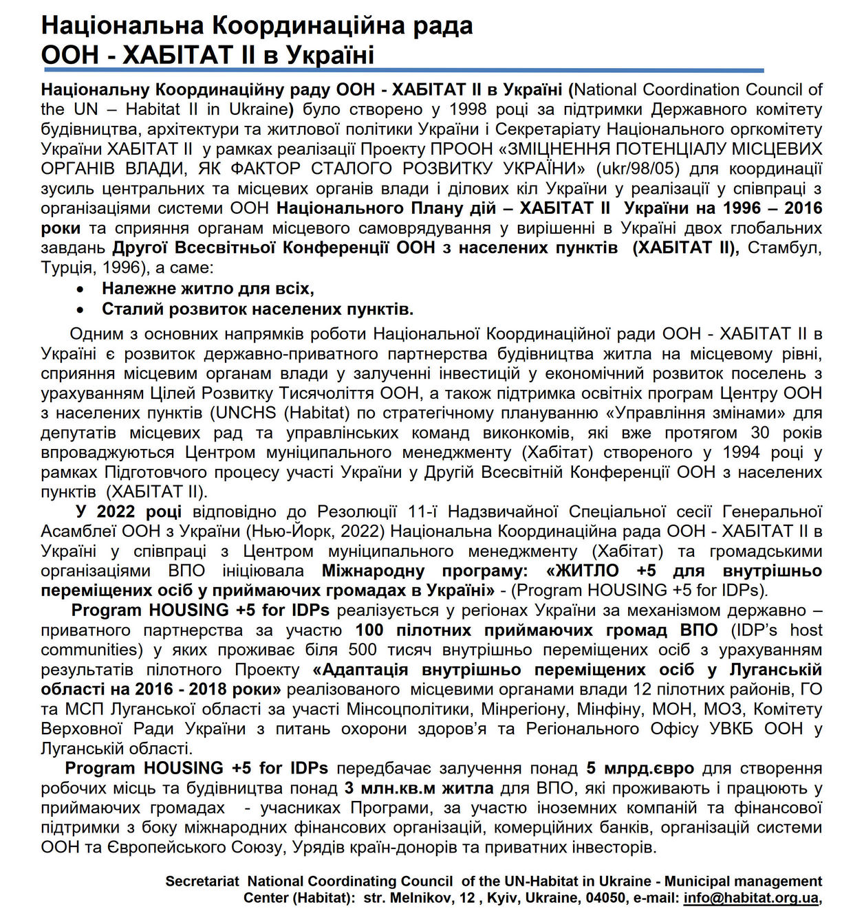 ХАБІТАТ ІІ України на 1996 – 2016 роки ЦЕНТРОМ МУНІЦИПАЛЬНОГО МЕНЕДЖМЕНТУ